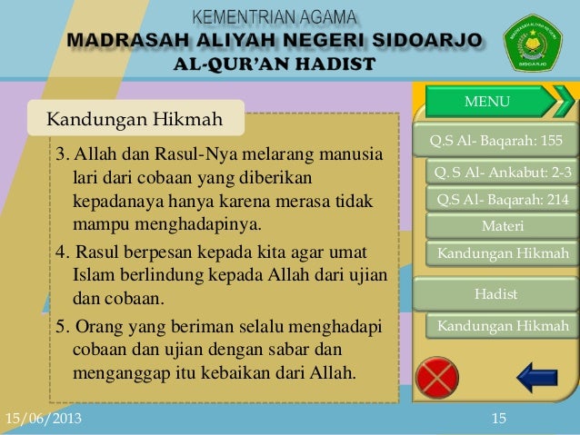 Judul Surah: Al Qur An Hadist Bab Ujian Dan Cobaan |
