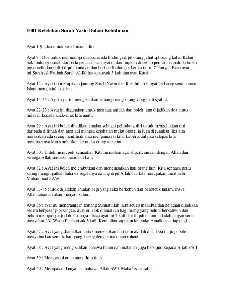 1001 Kelebihan Surah Yasin Dalam Kehidupan Pdf