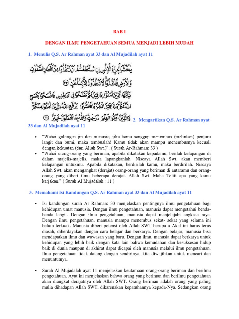 Salinlah Kalimat Pada Surah Ar Rahman Ayat 33 Dan Surah Al Mujadalah Ayat 11 Yg Terdapat Bacaan Brainly Co Id